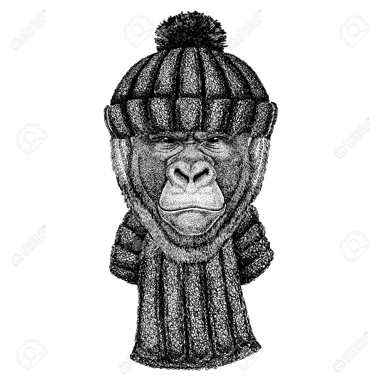 Gorilla Monkey Ape Cool Animal Wearing Knitted Winter Hat Warm Headdress Beanie Christmas Cap For Tattoo T Shirt Emblem Badge Patch Royalty Free Cliparts Vectors And Stock Illustration Image